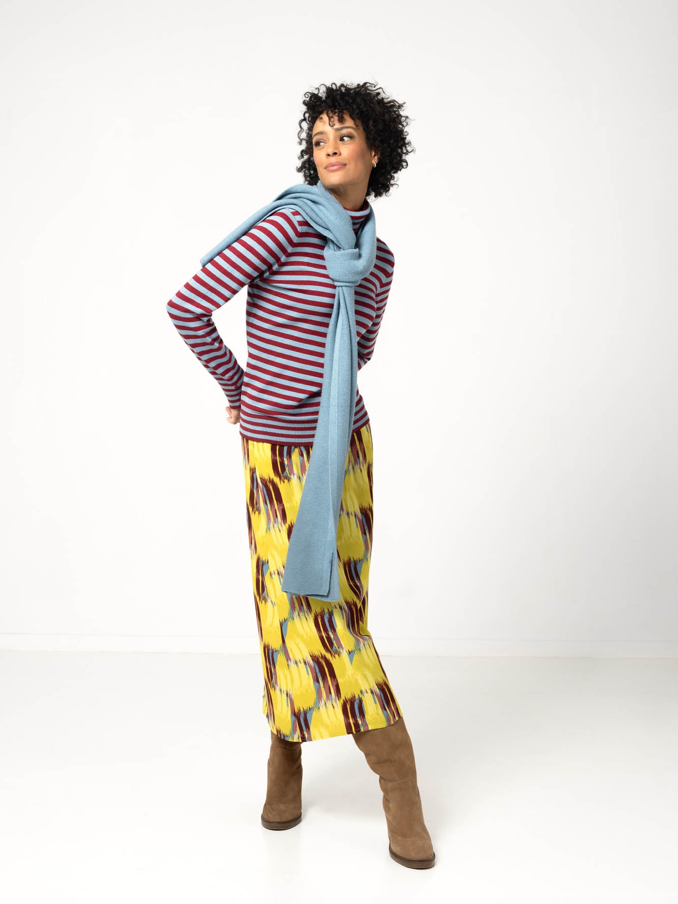 Rechte sjaal in mooie breisteek van zachte warme viscose mix.