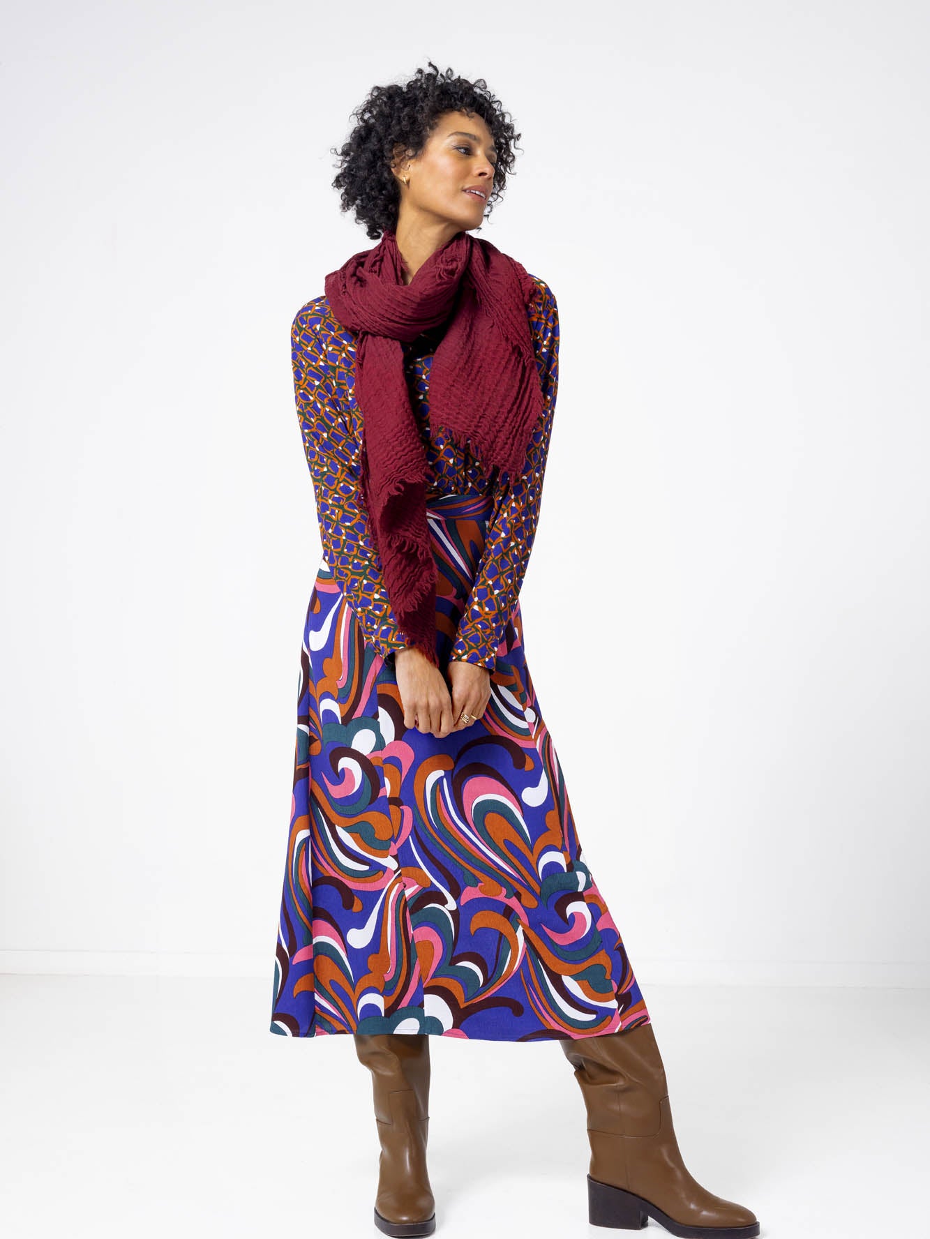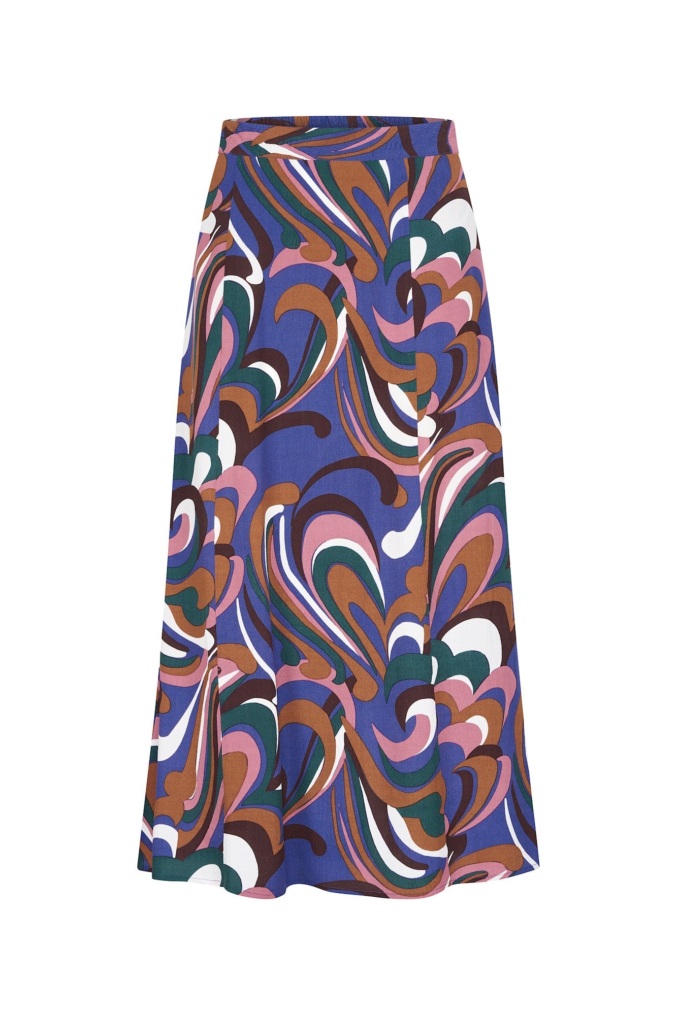 Comfortabele modieuze lange rok van viscose crêpe met zakjes en tailleband van elastiek in verschillende stijlvolle prints. Leuk te combineren met een van onze basis truitjes of vestjes van bamboo.