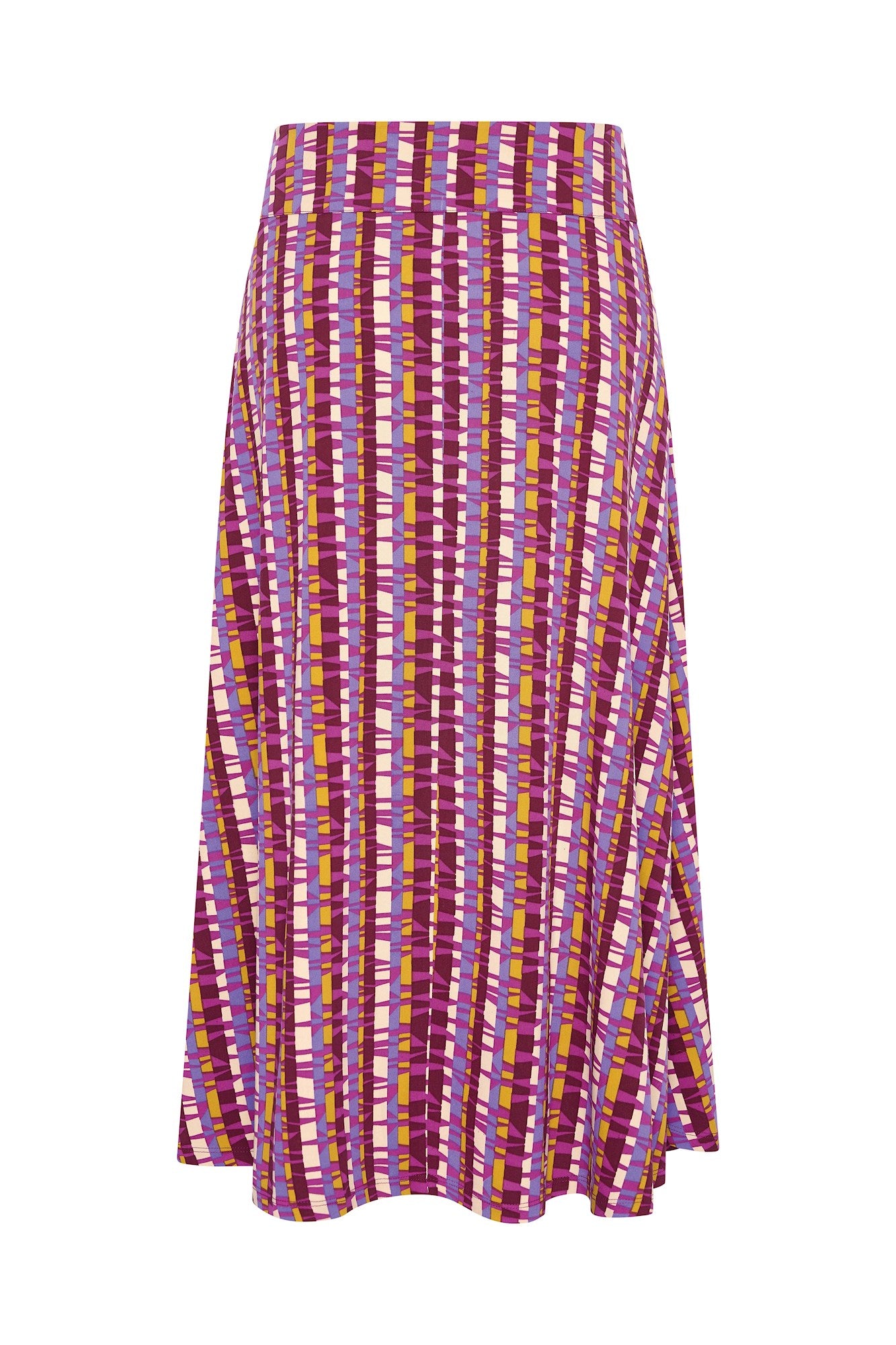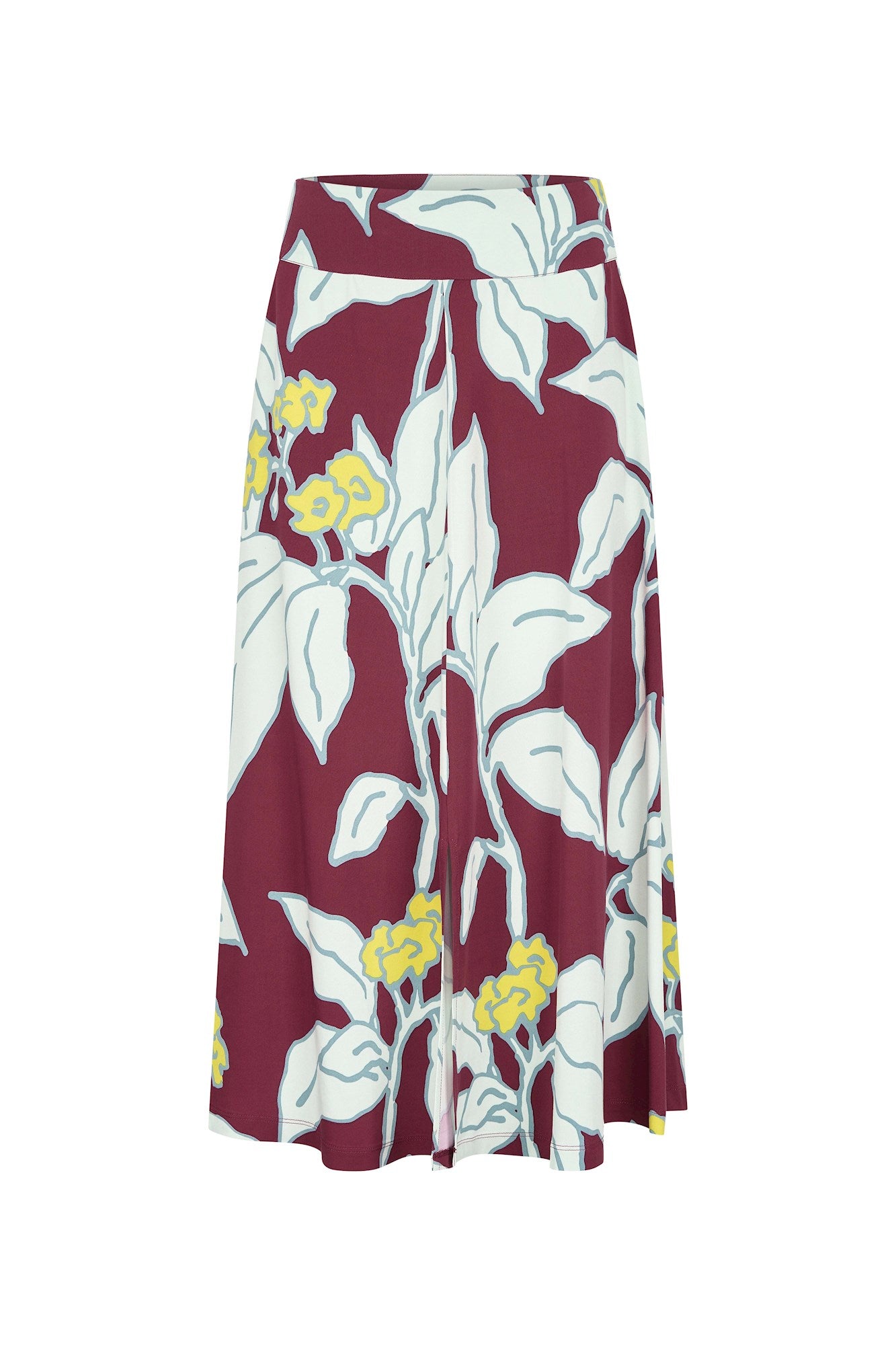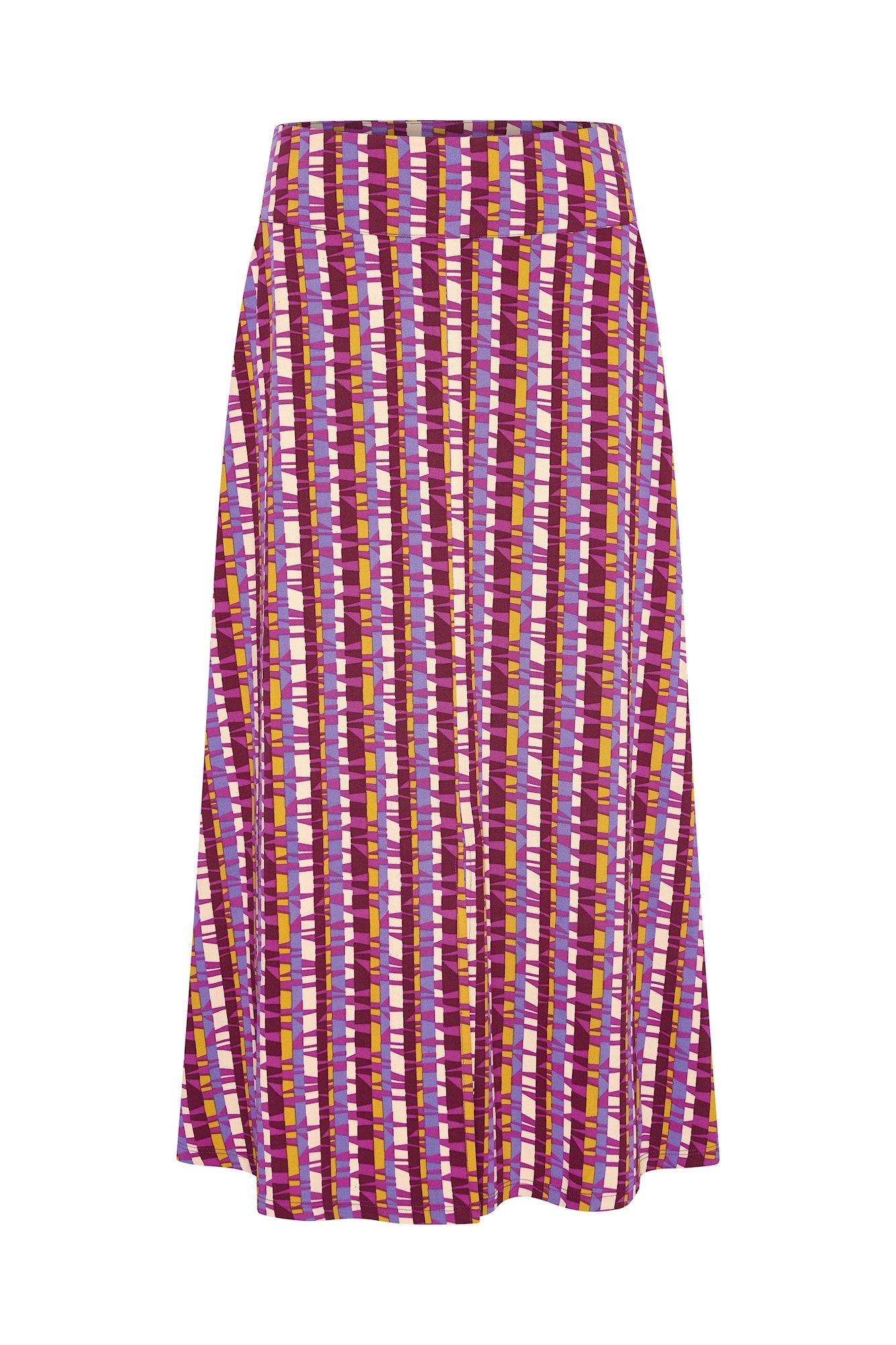 Lange A-lijn rok met tailleband en zakjes. Deze soepele rok in prachtige winterse prints is gemaakt van een zachte geweven viscose met een fijne stretch. De rok heeft zakken en middenvoor een split.