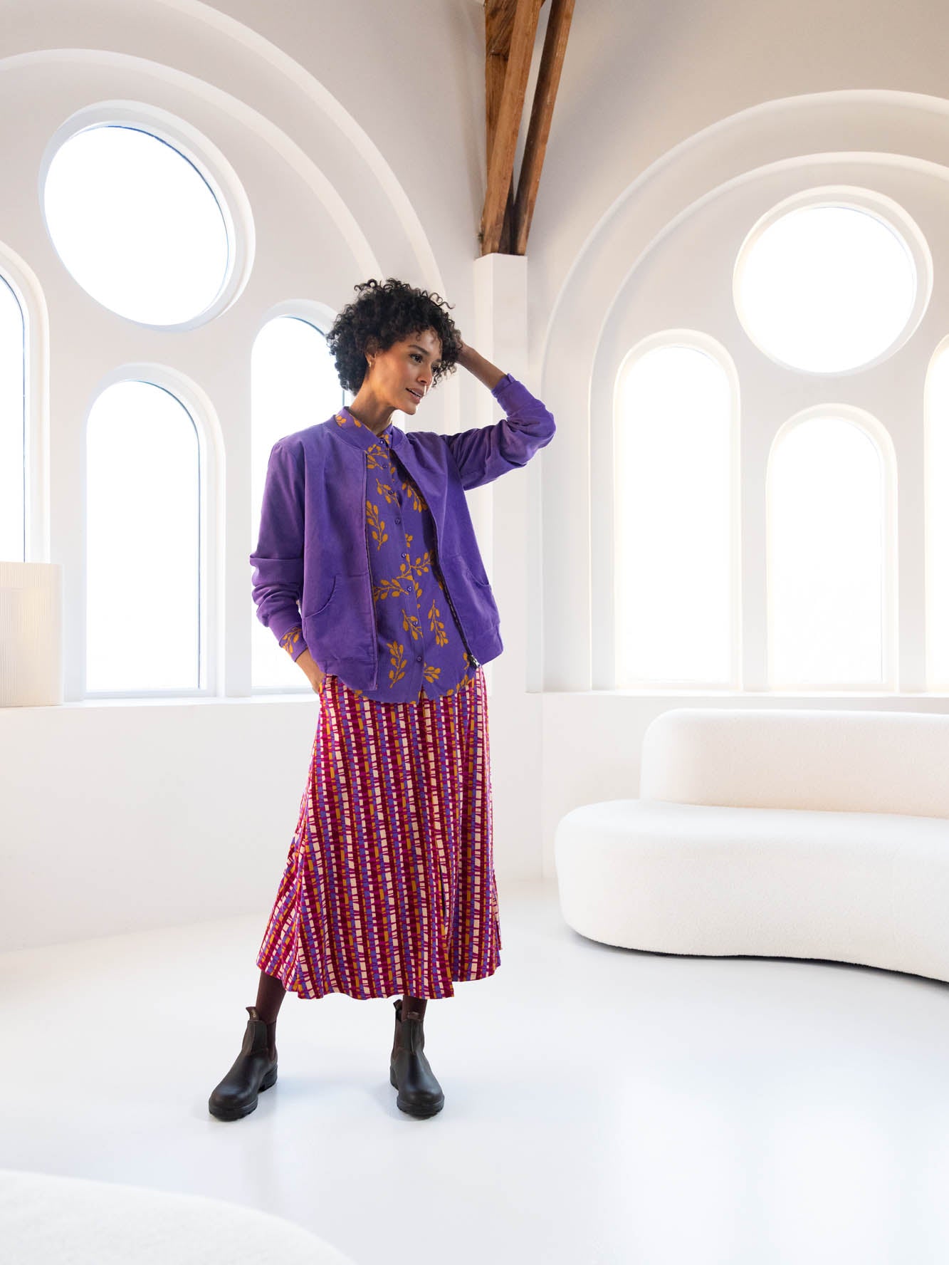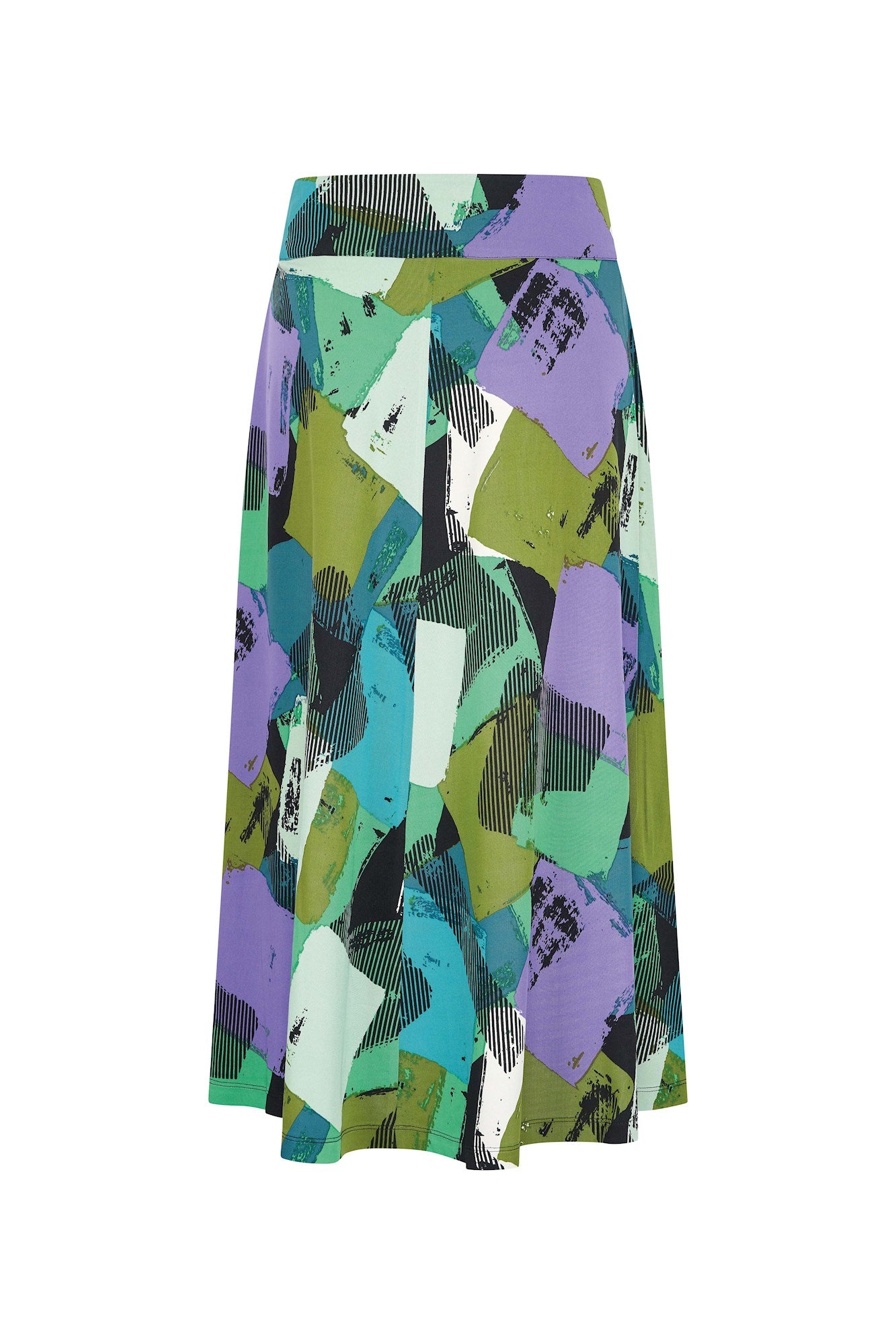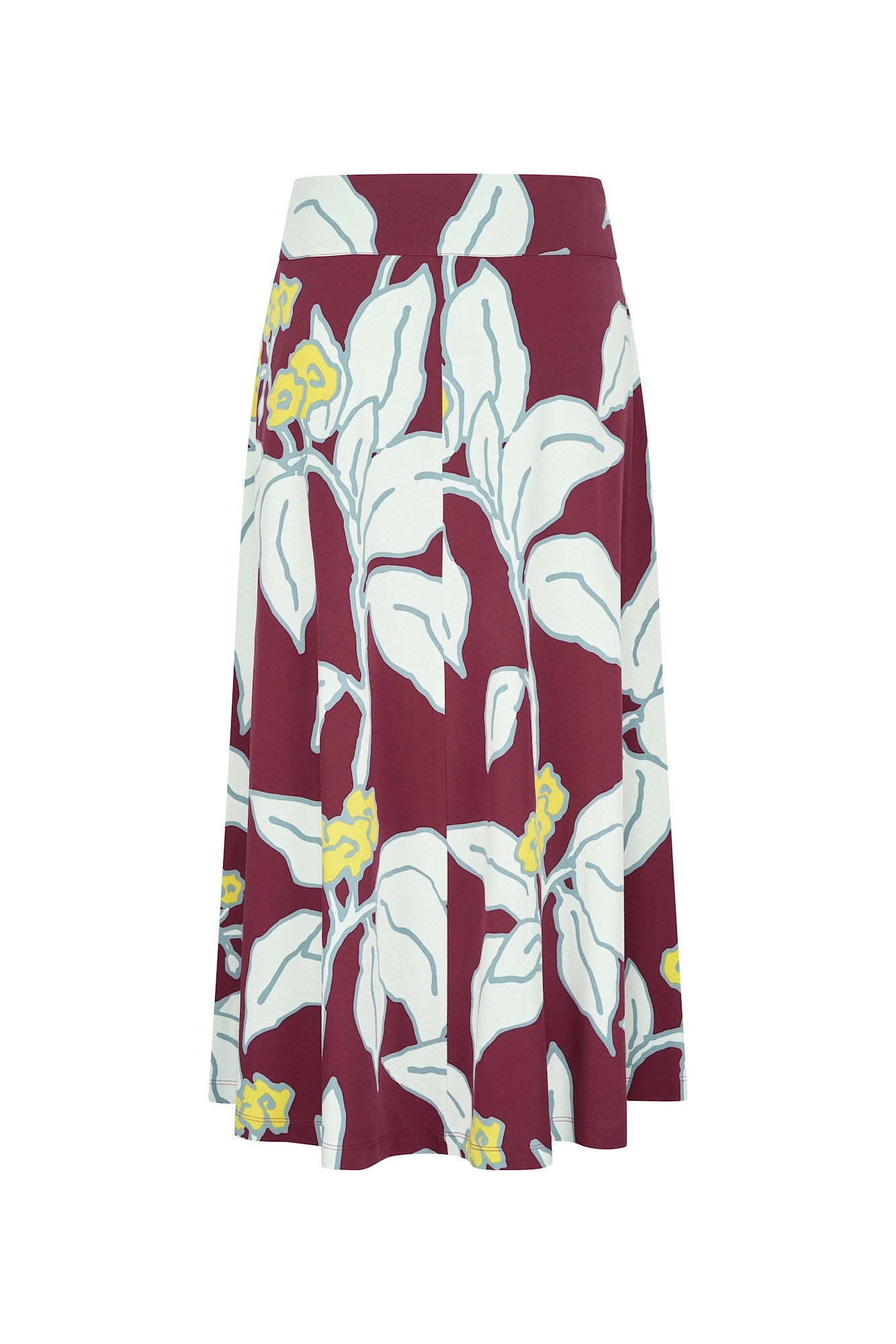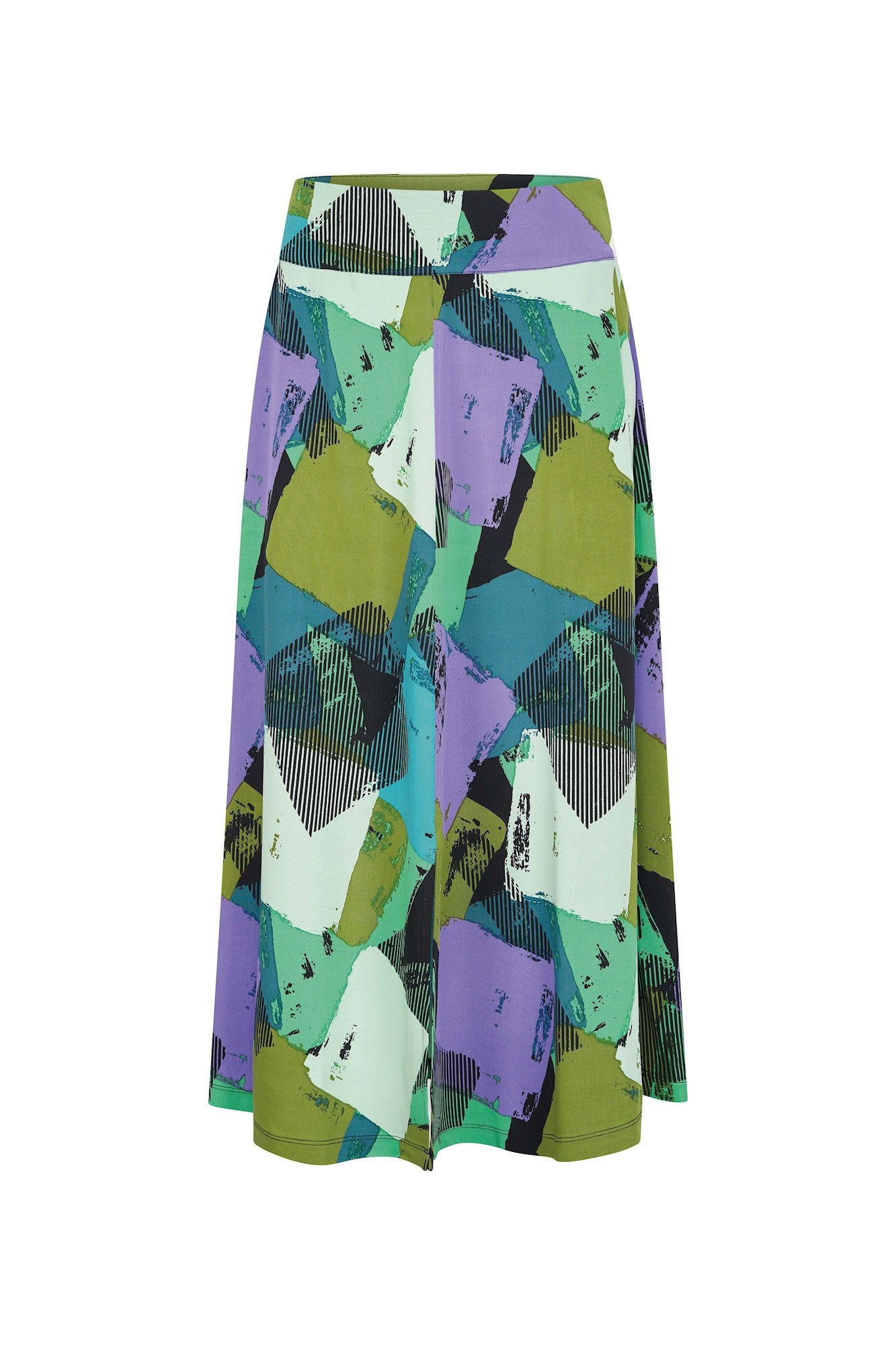Lange A-lijn rok met tailleband en zakjes. Deze soepele rok in prachtige winterse prints is gemaakt van een zachte geweven viscose met een fijne stretch. De rok heeft zakken en middenvoor een split.