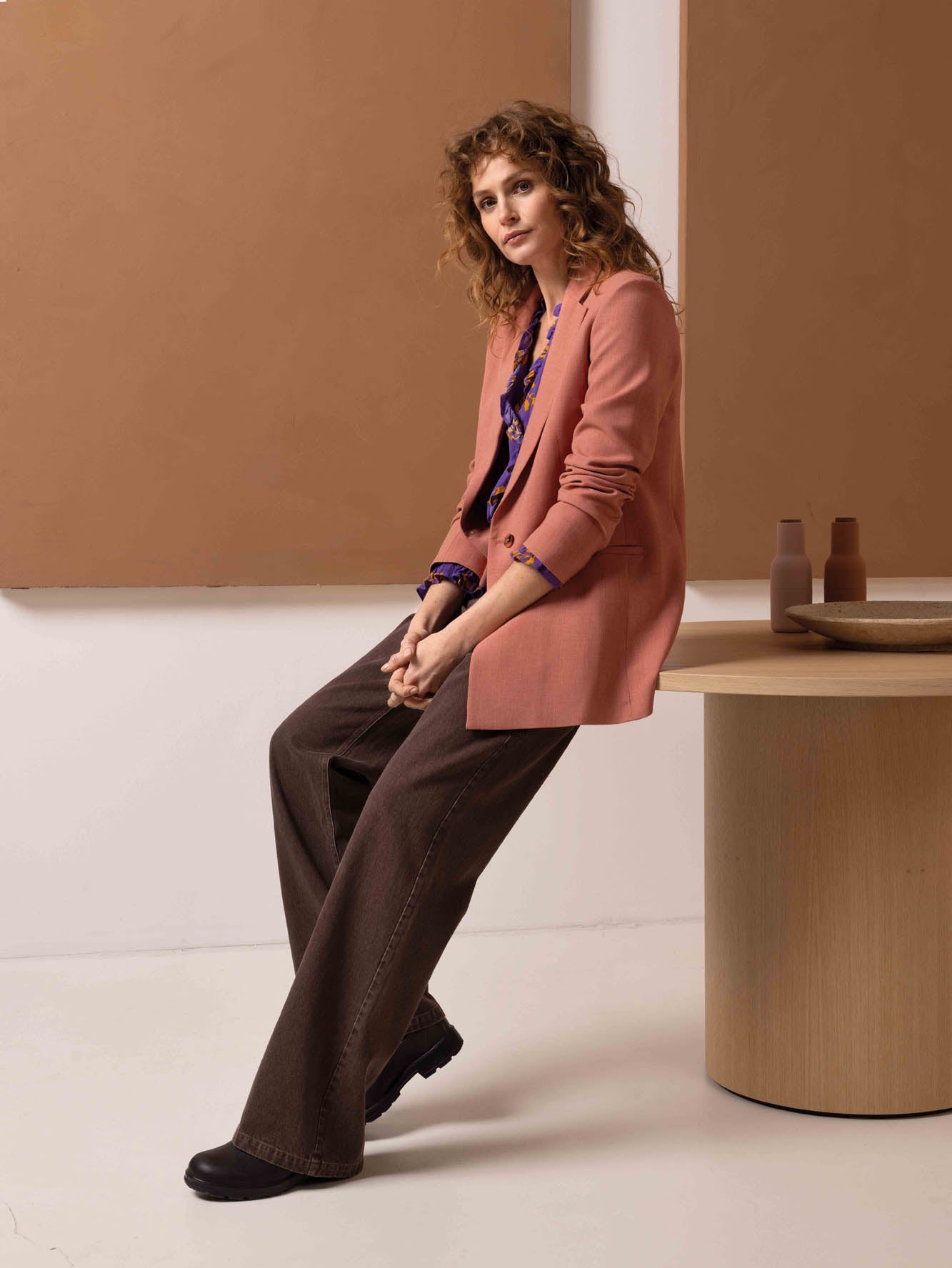 Mooi lang colbert met een knoop en twee front pockets in een soepele mix van gerecycled polyester-rayon mix met een klein beetje stretch. Verkrijgbaar in drie mooie najaarskleuren. Deze comfortabele en stijlvolle blazer combineert uitstekend met de bijpassende broek voor een outfit met luxe uitstraling.