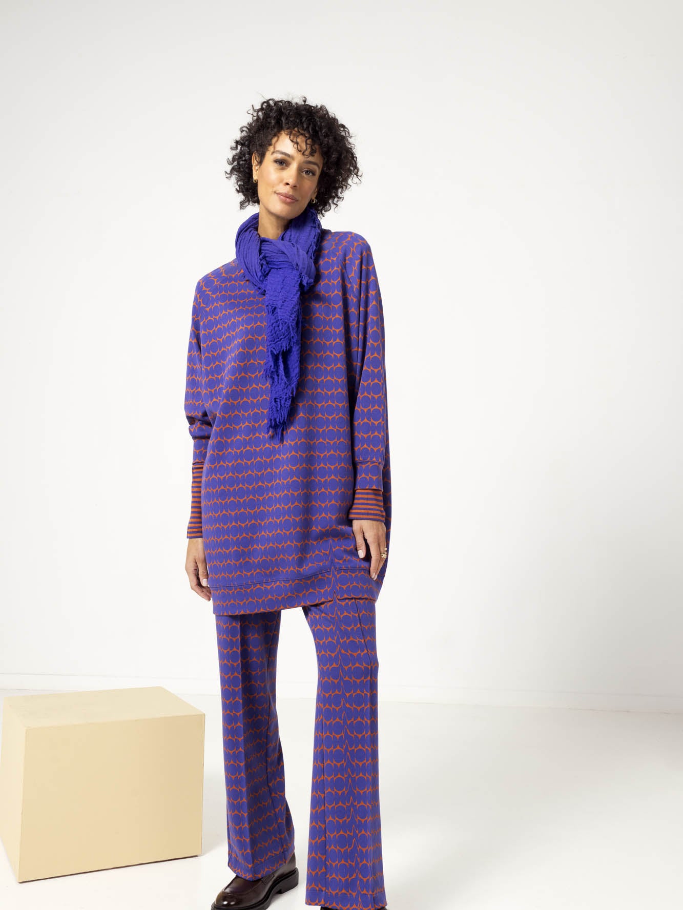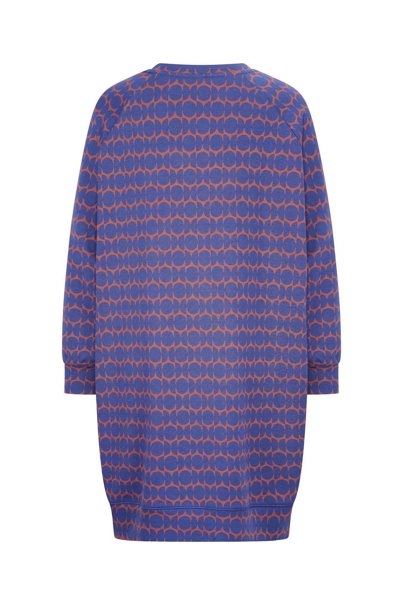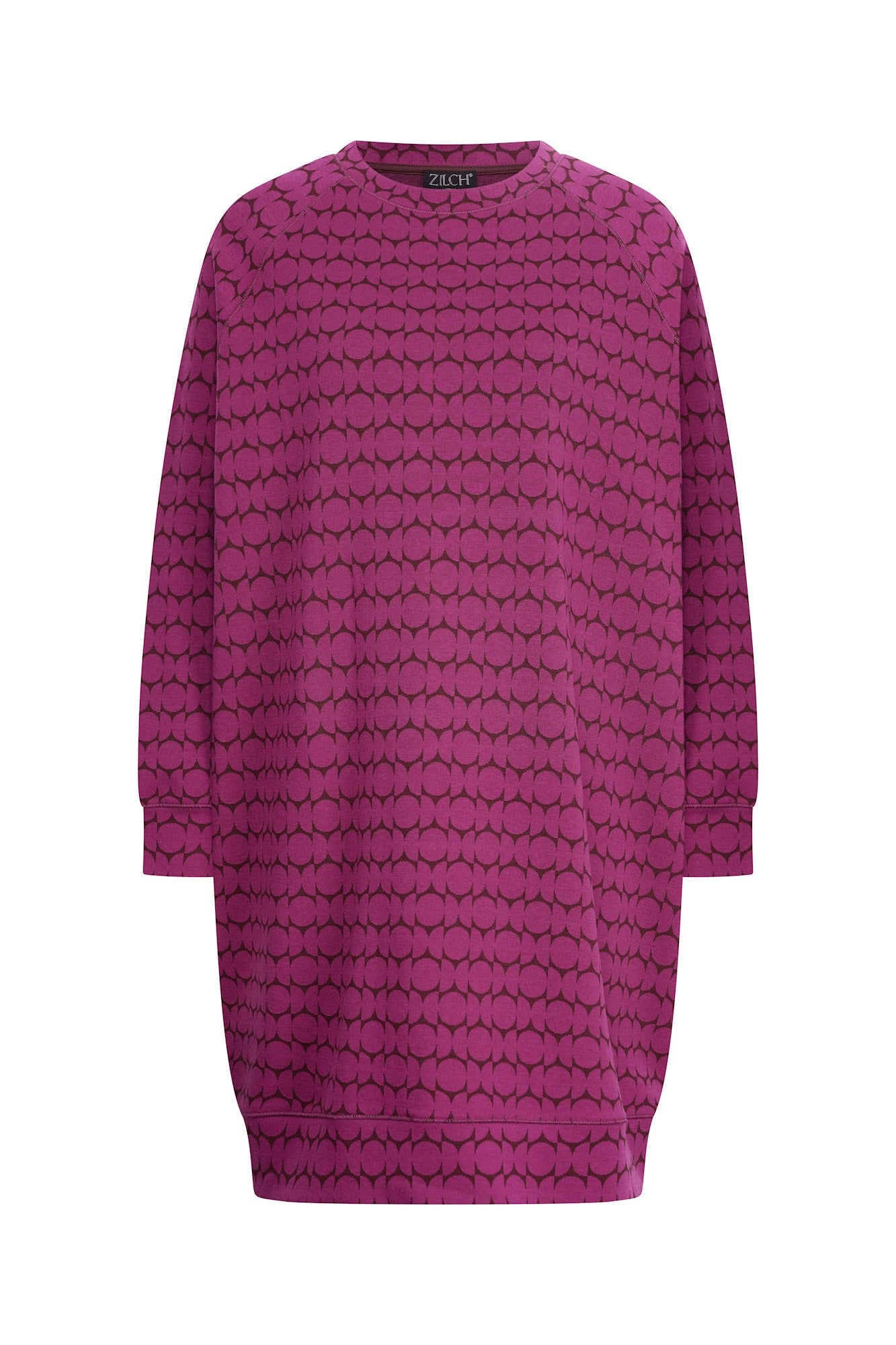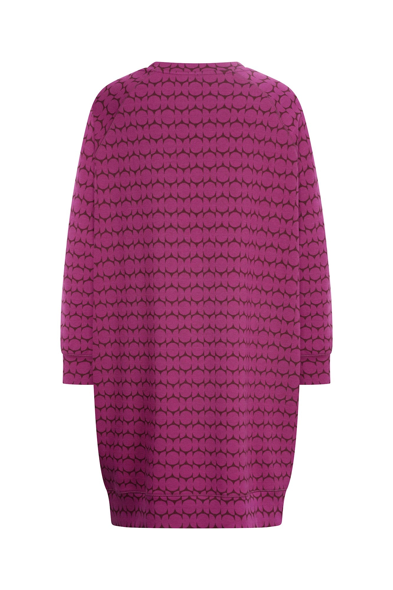Wijde kortere jurk met lange raglanmouwen en ronde hals in een zacht fijn breisel met grafisch patroon. Combineer met een bijpassende panty voor een trendy en comfortabele winterse outfit.