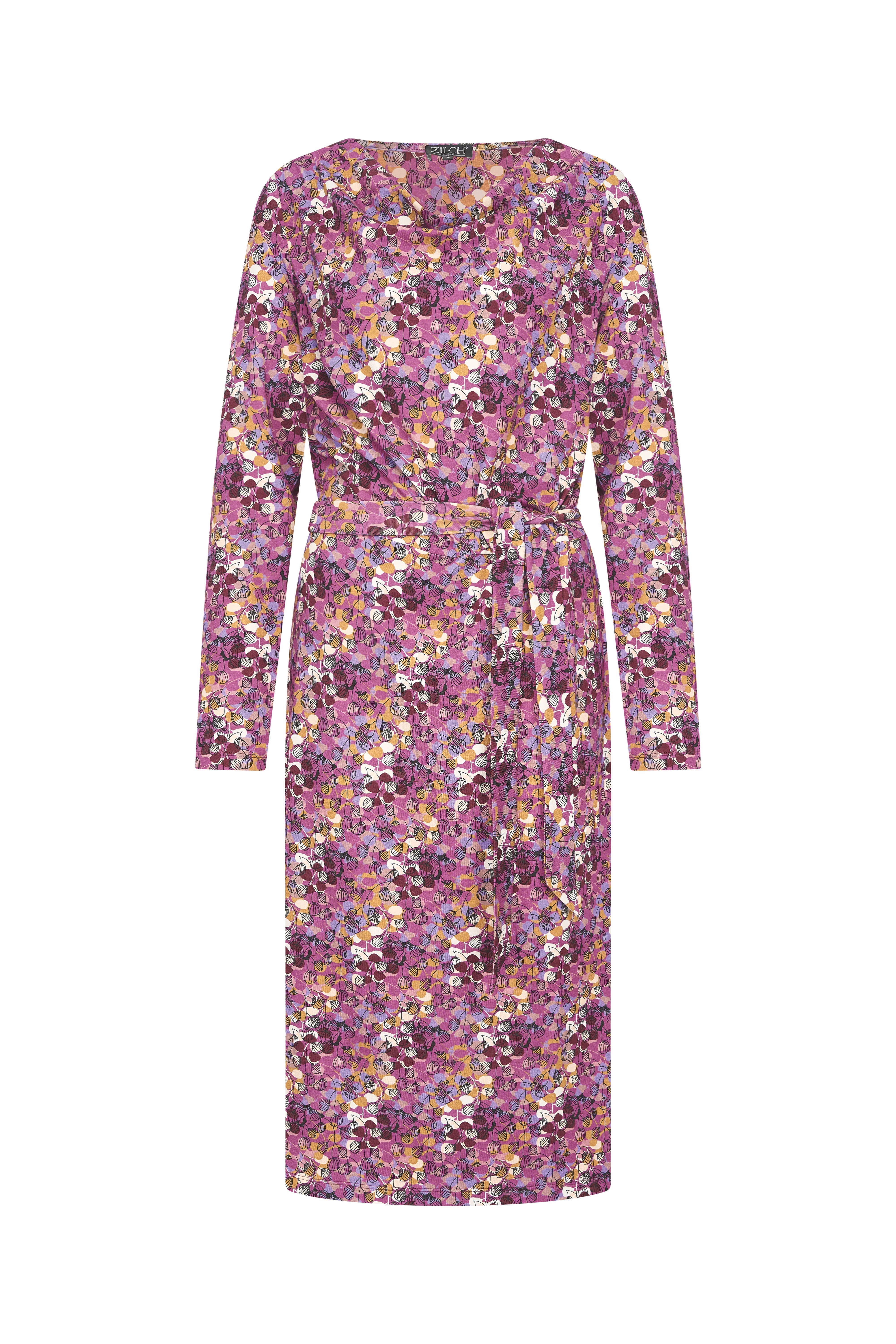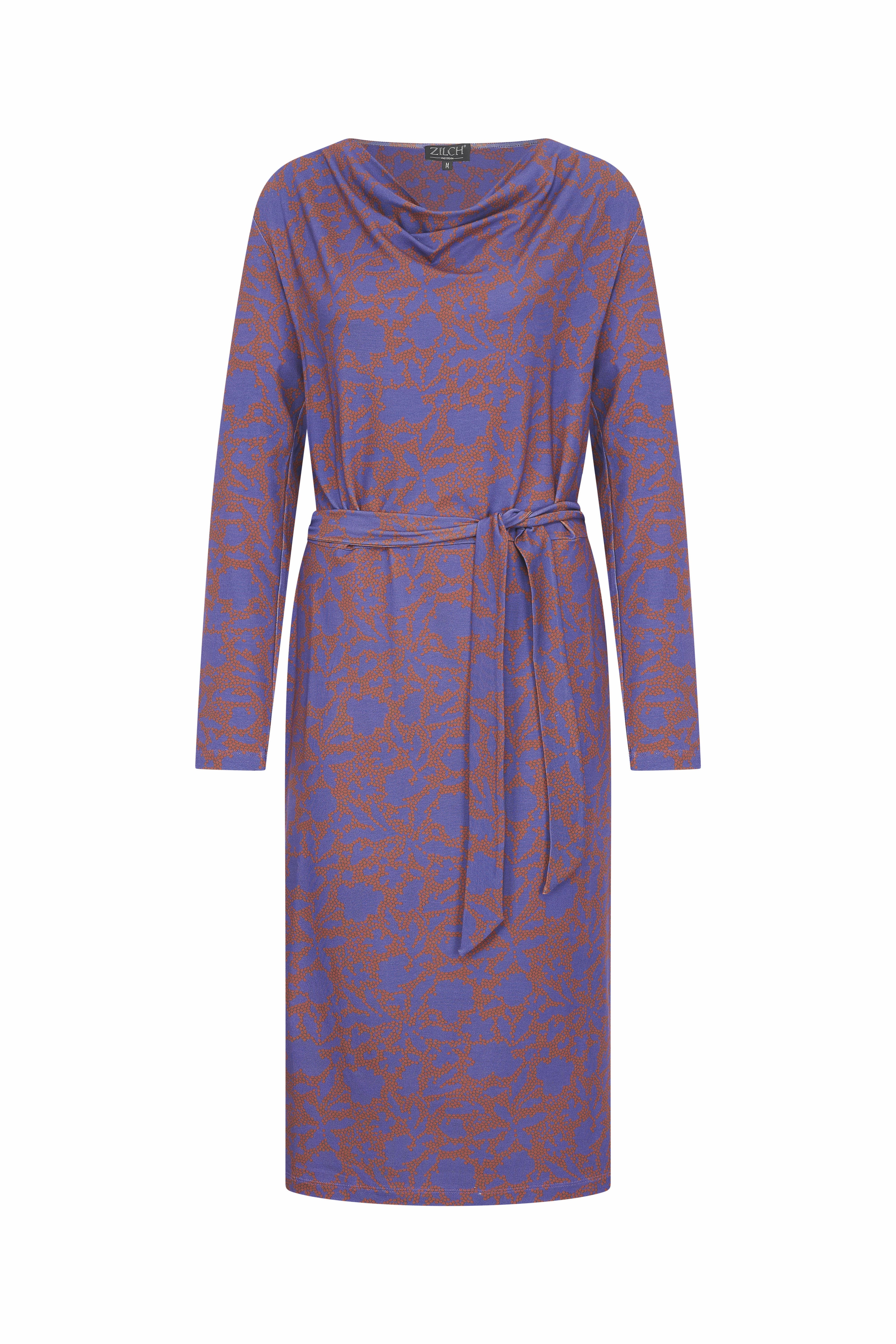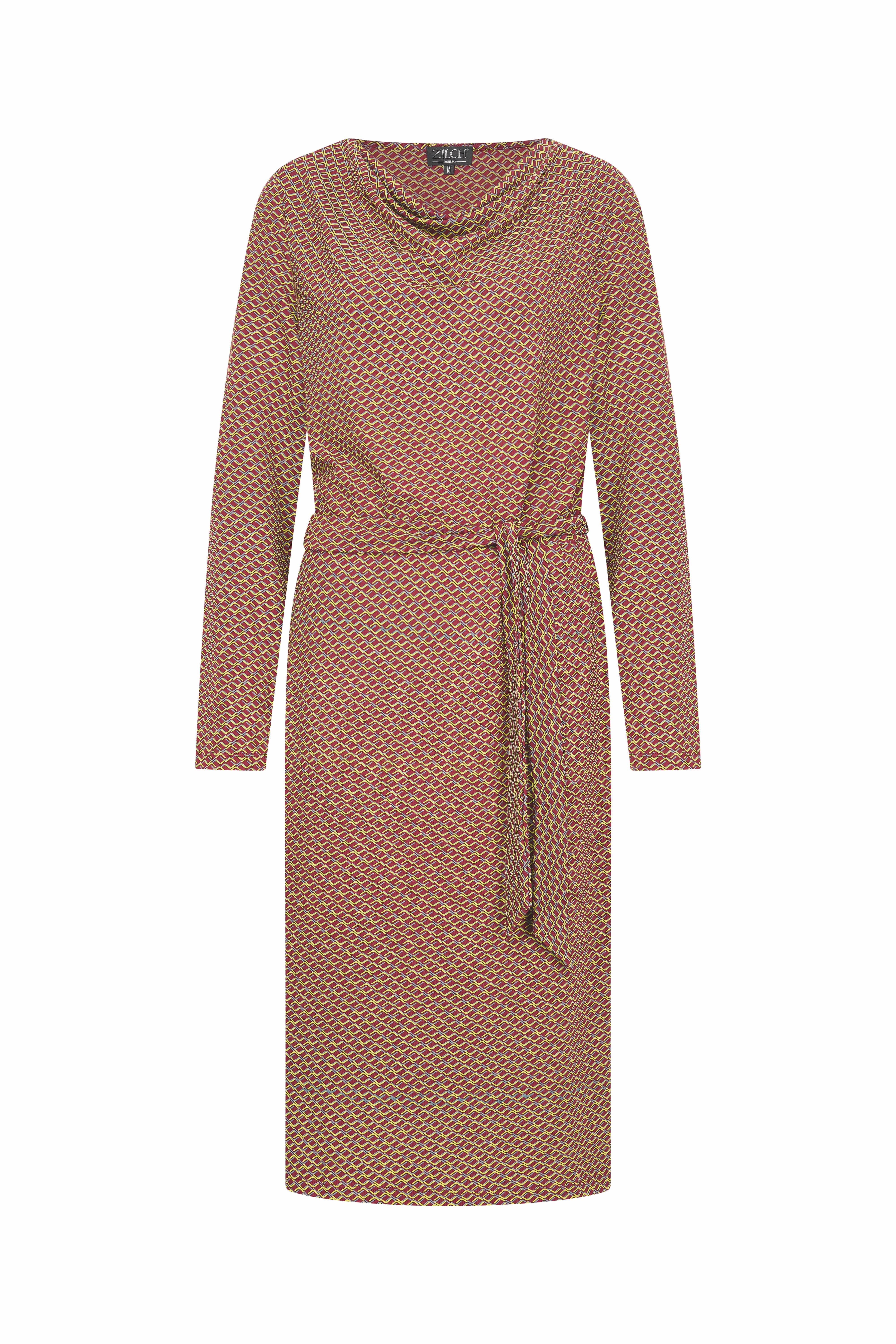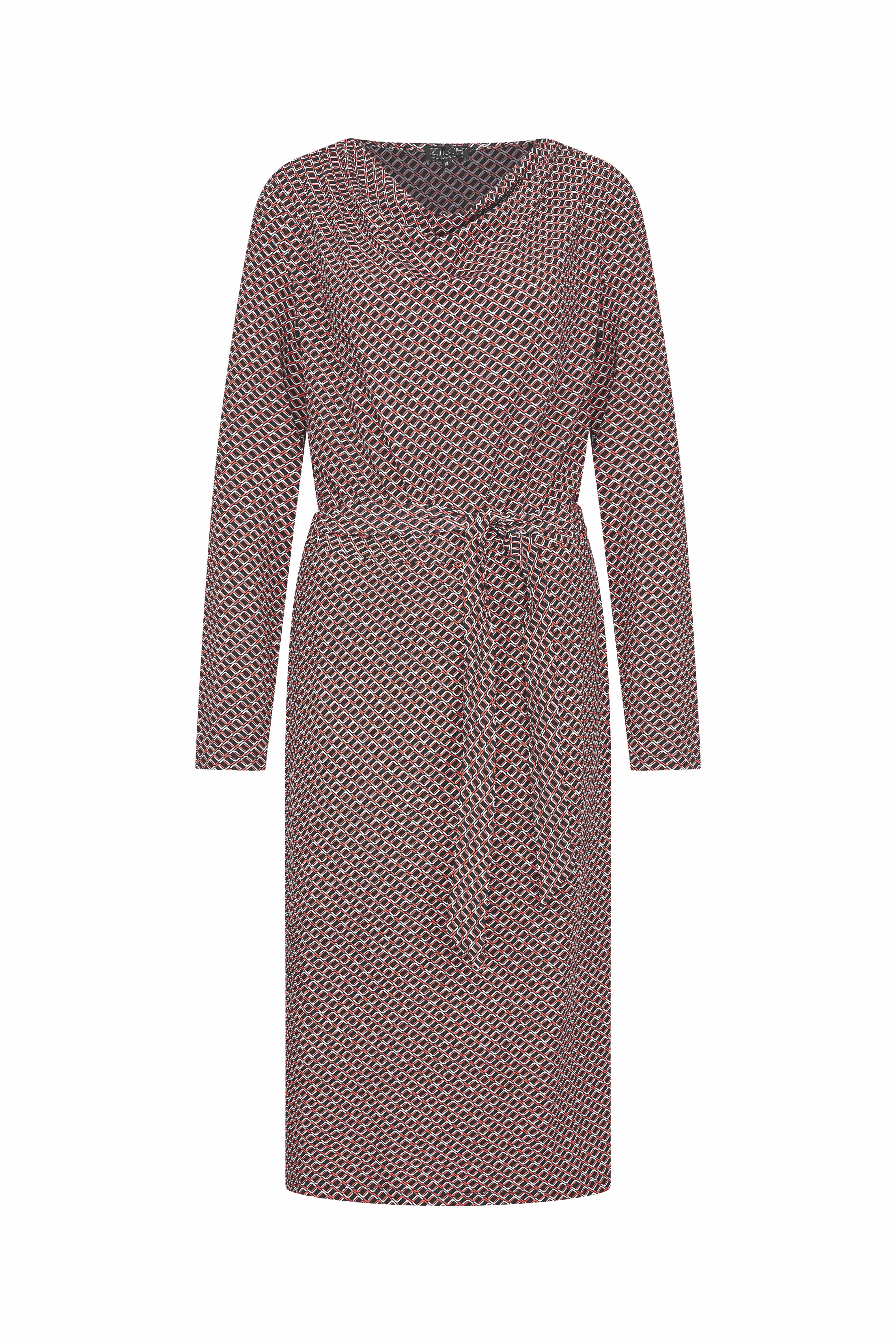 Langere rechte jurk met waterval hals en lange mouwen van zachte viscose van het merk Lenzing EcoVero in kleurrijke najaar prints. Strik in de taille het bijpassende ceintuur voor een stijlvol silhouet.
