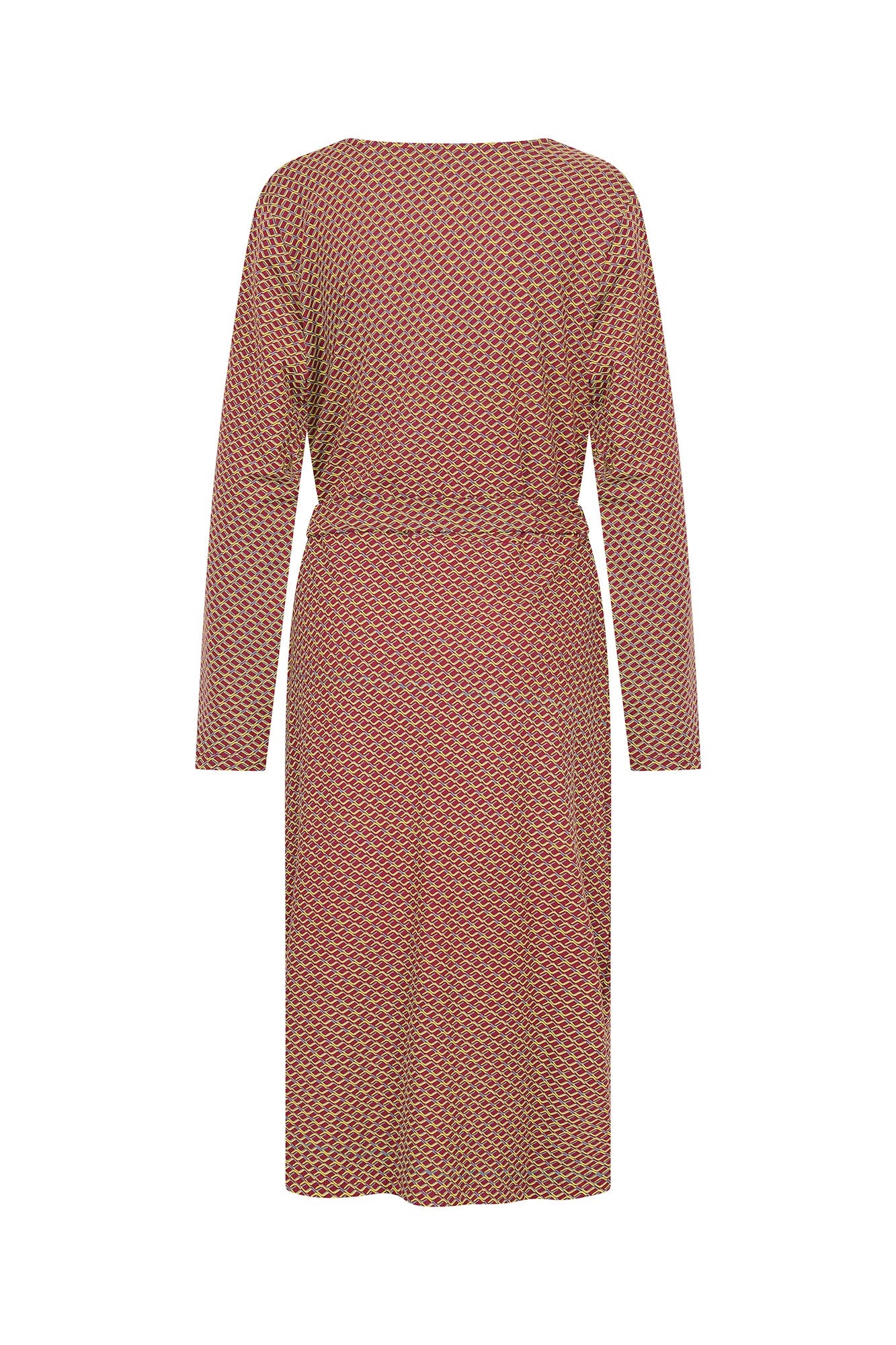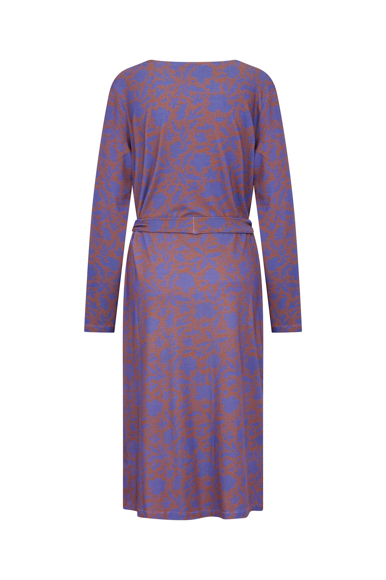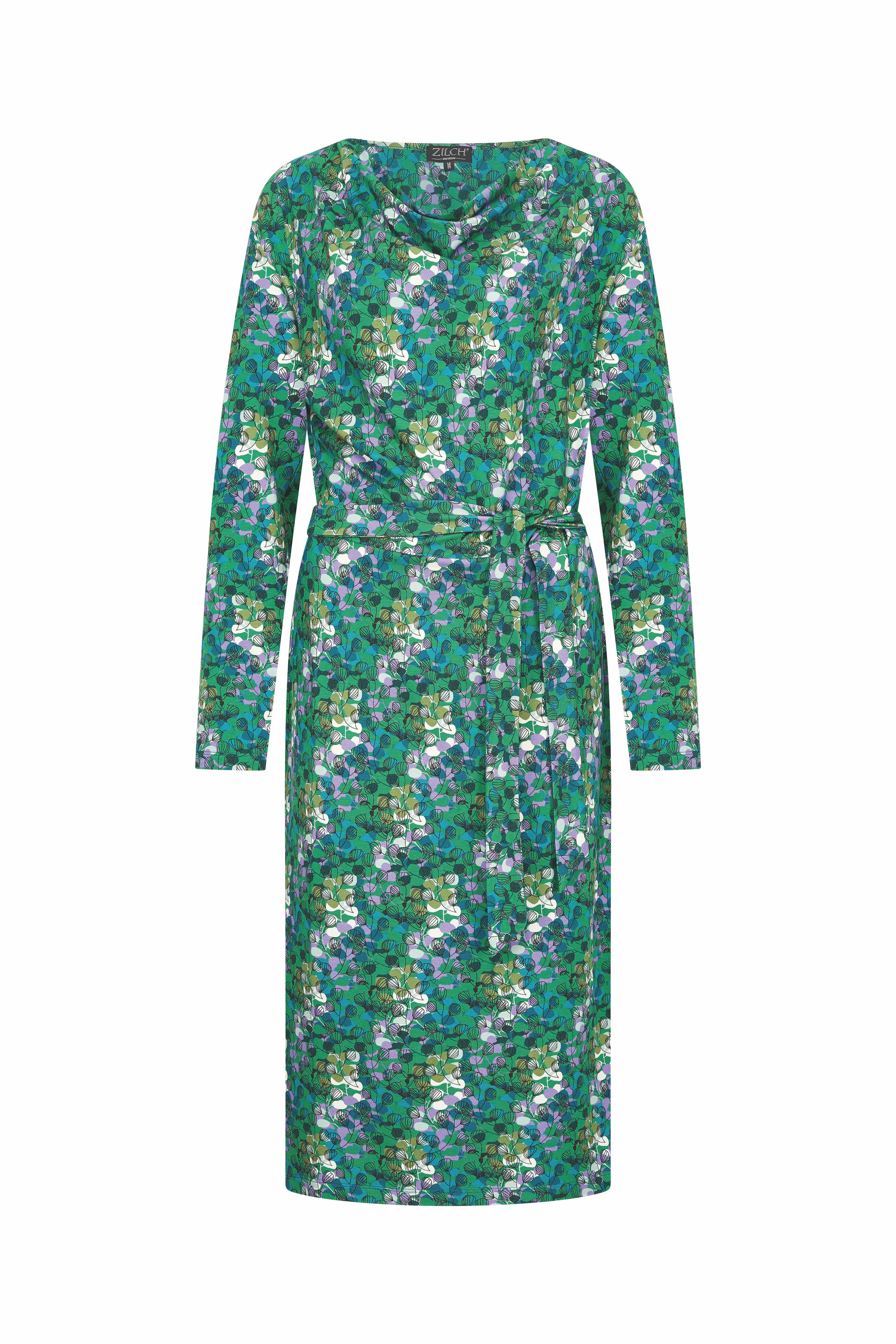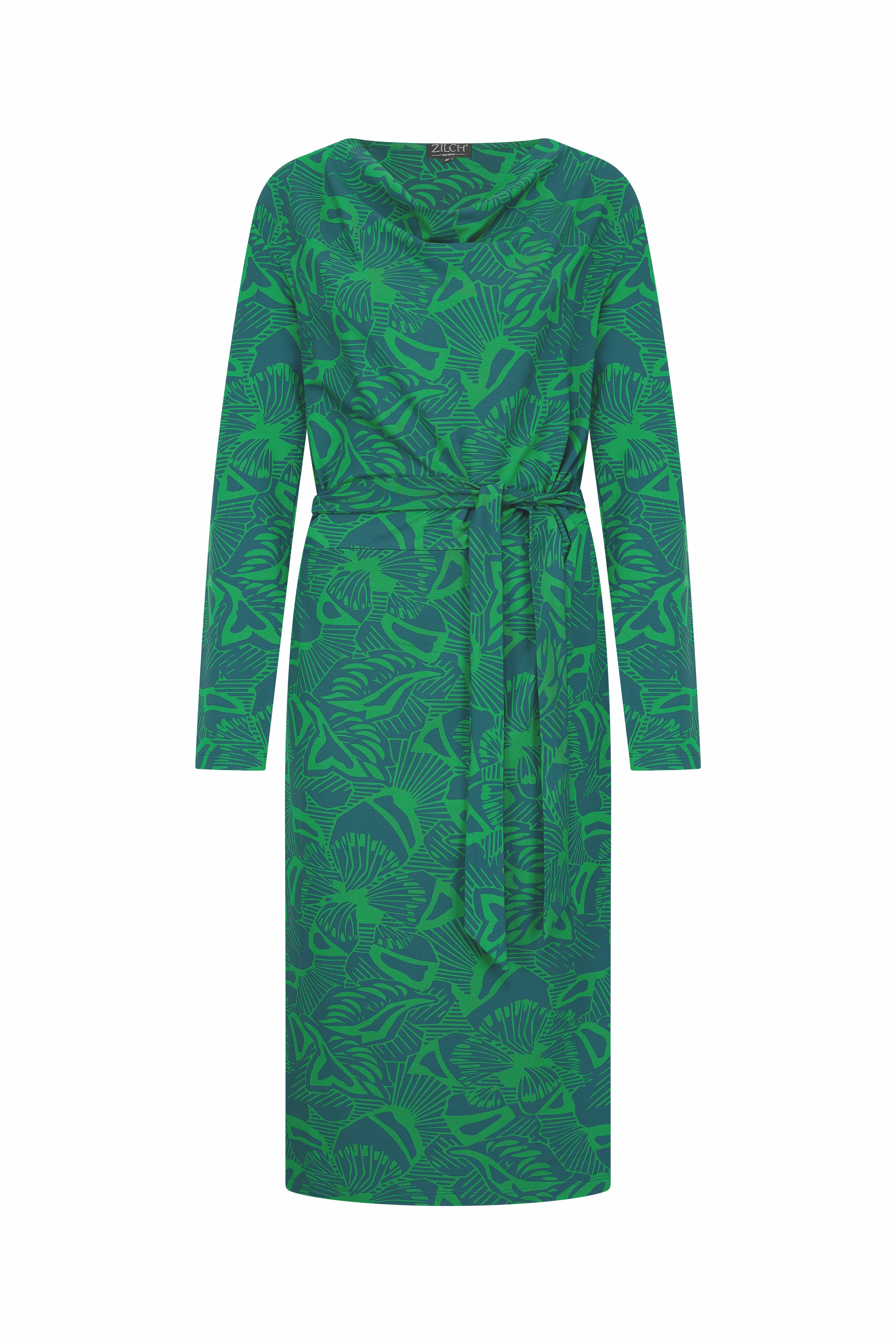 Langere rechte jurk met waterval hals en lange mouwen van zachte viscose van het merk Lenzing EcoVero in kleurrijke najaar prints. Strik in de taille het bijpassende ceintuur voor een stijlvol silhouet.