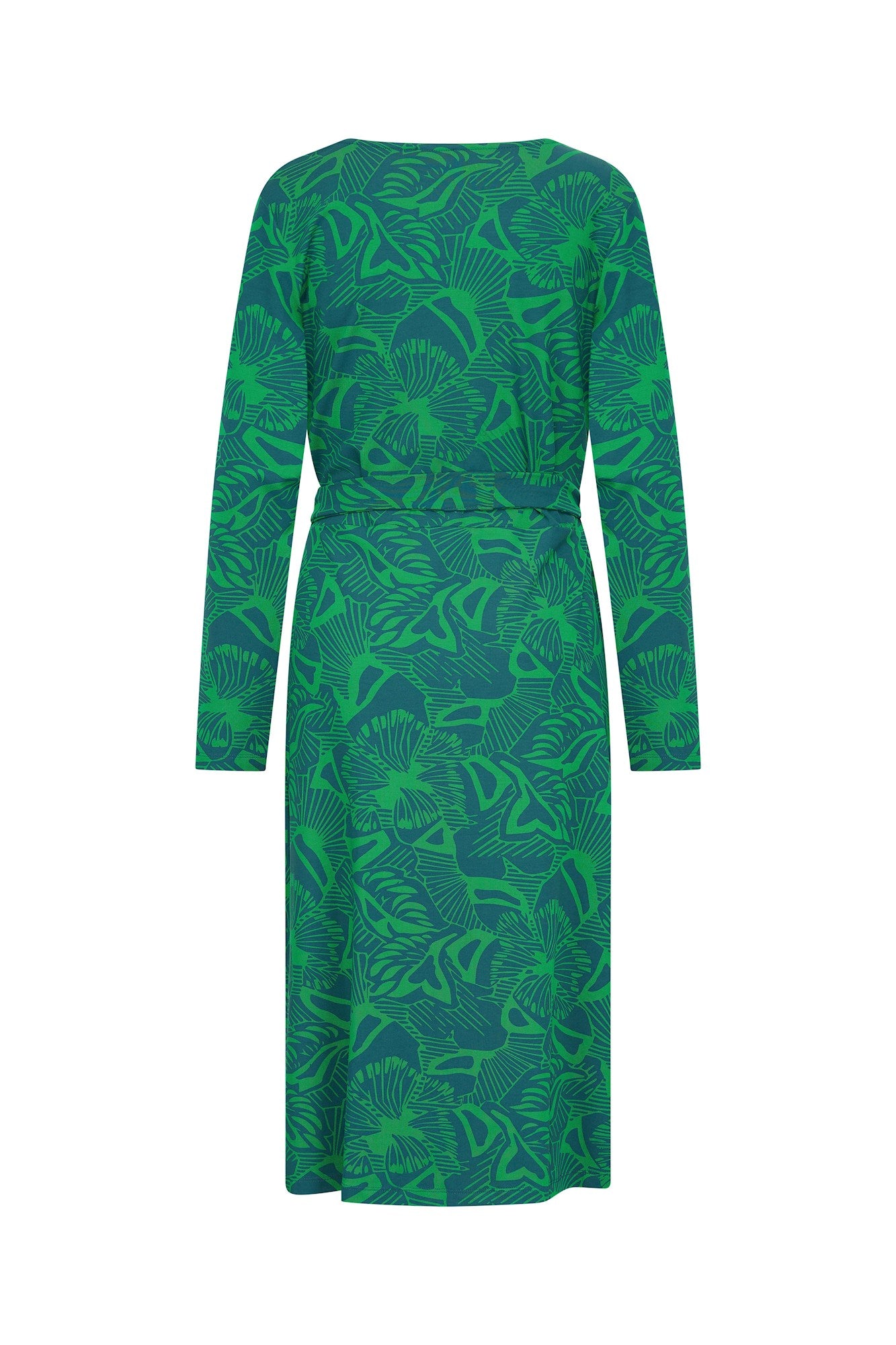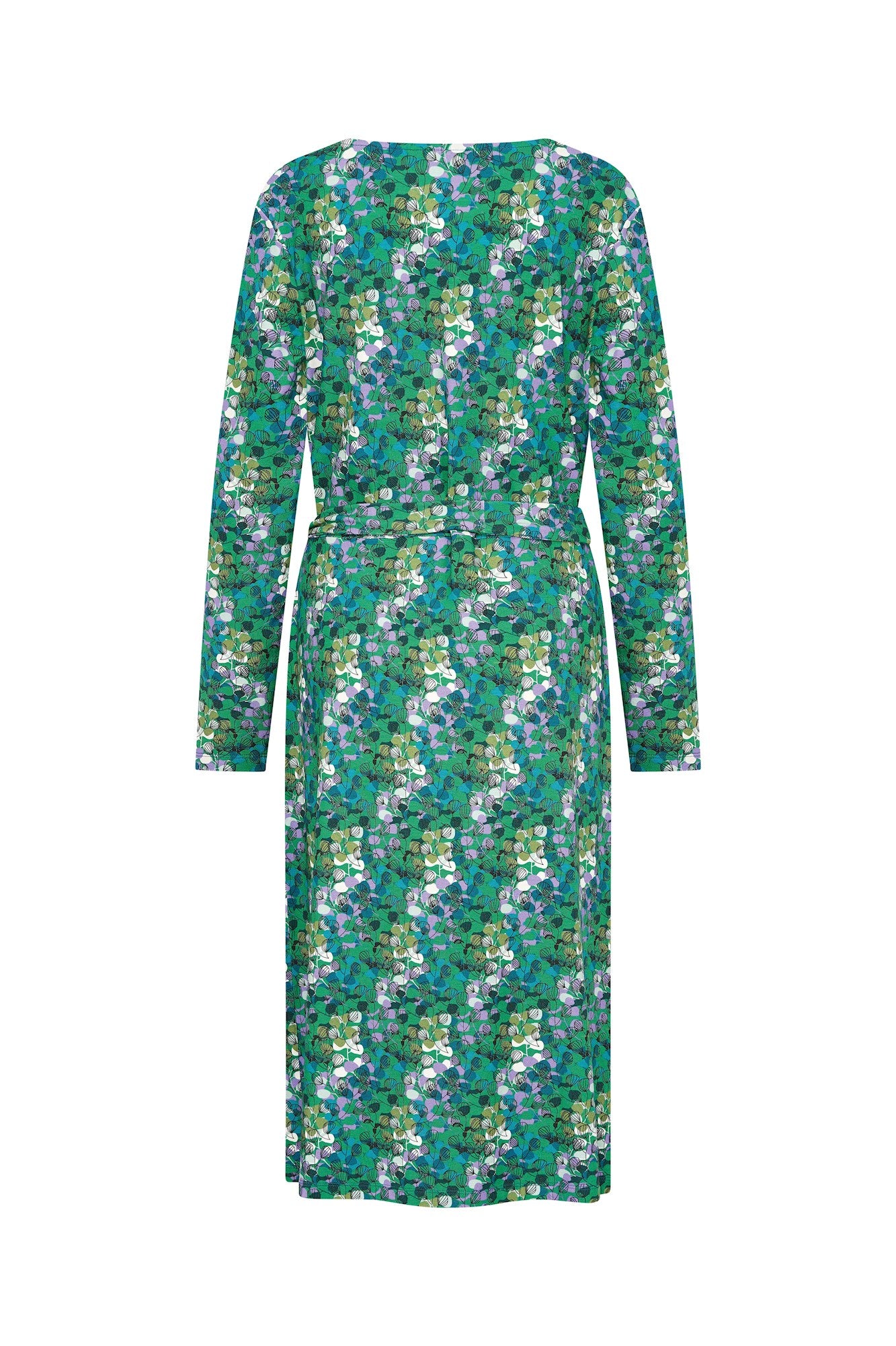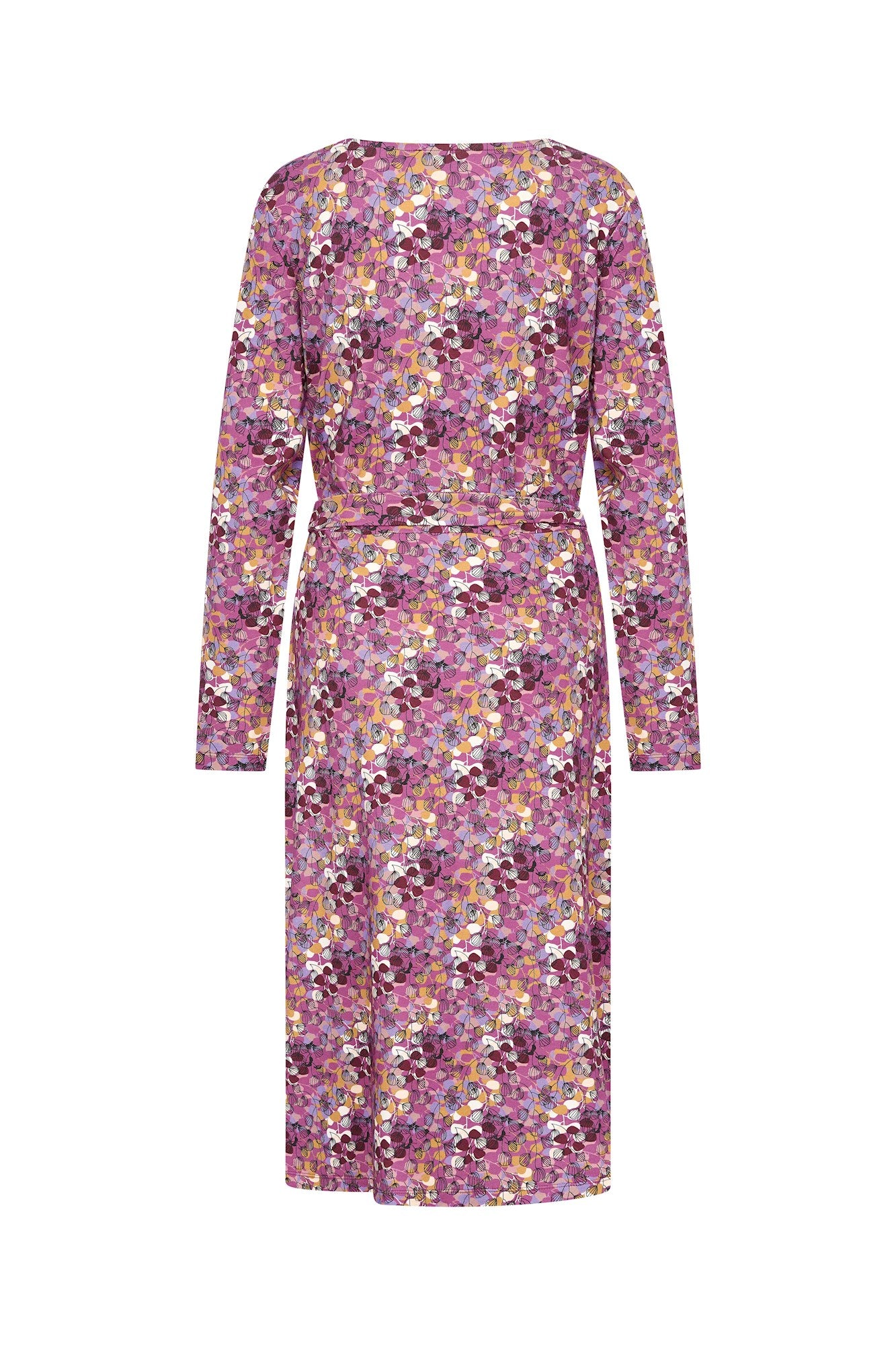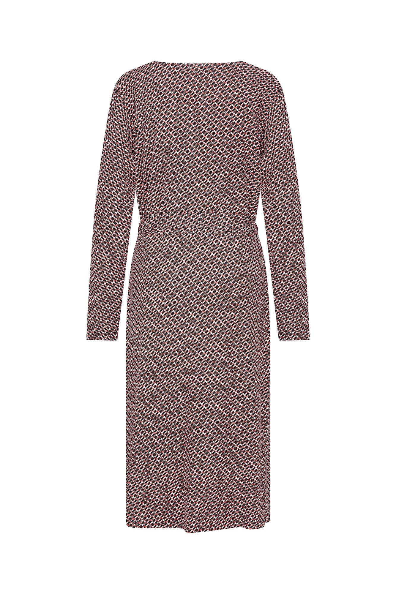 Langere rechte jurk met waterval hals en lange mouwen van zachte viscose van het merk Lenzing EcoVero in kleurrijke najaar prints. Strik in de taille het bijpassende ceintuur voor een stijlvol silhouet.