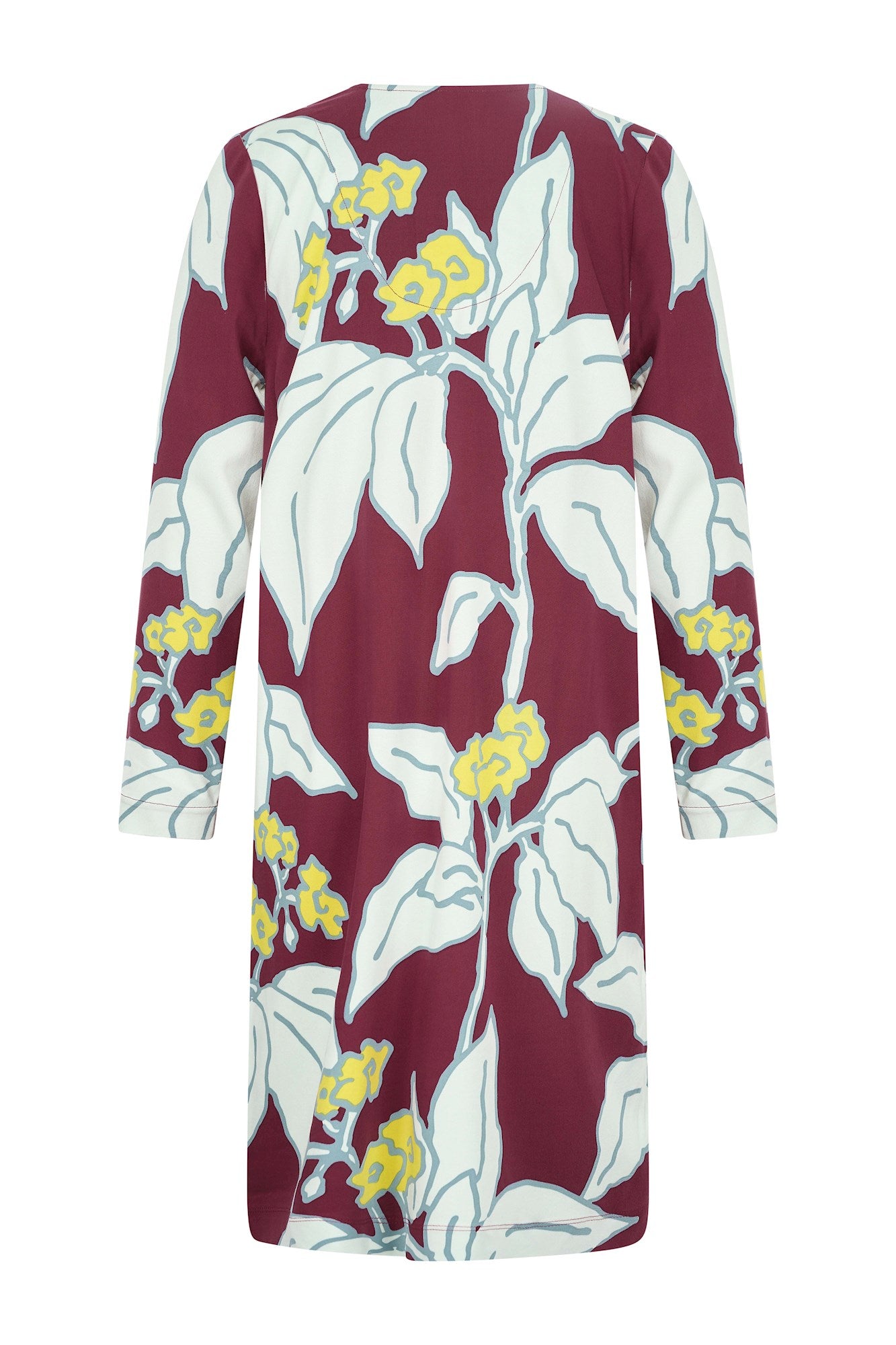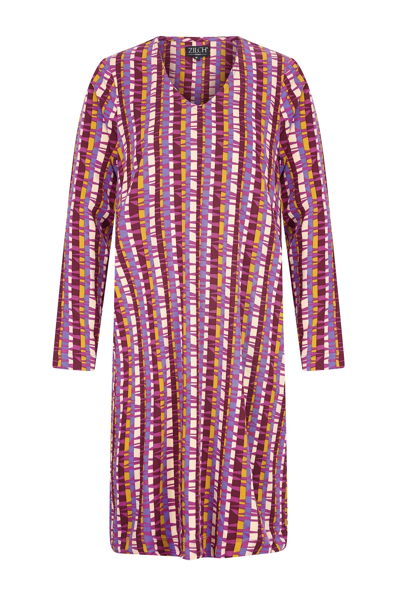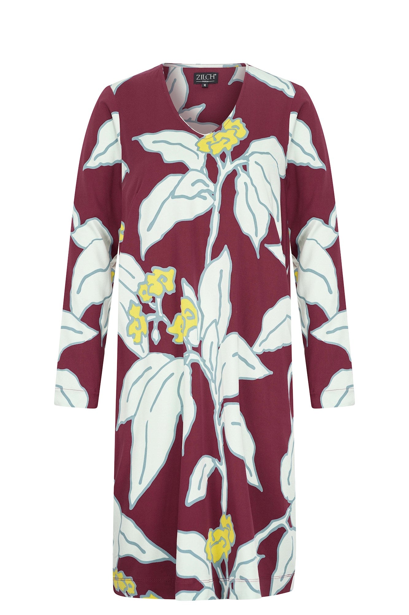 Wijdvallende jurk met V-hals en zakken. De jurk heeft lange mouwen en is gemaakt van een zachte viscose met een fijne stretch in een prachte winterse prints. Een terugkerende favoriet in onze collecties.