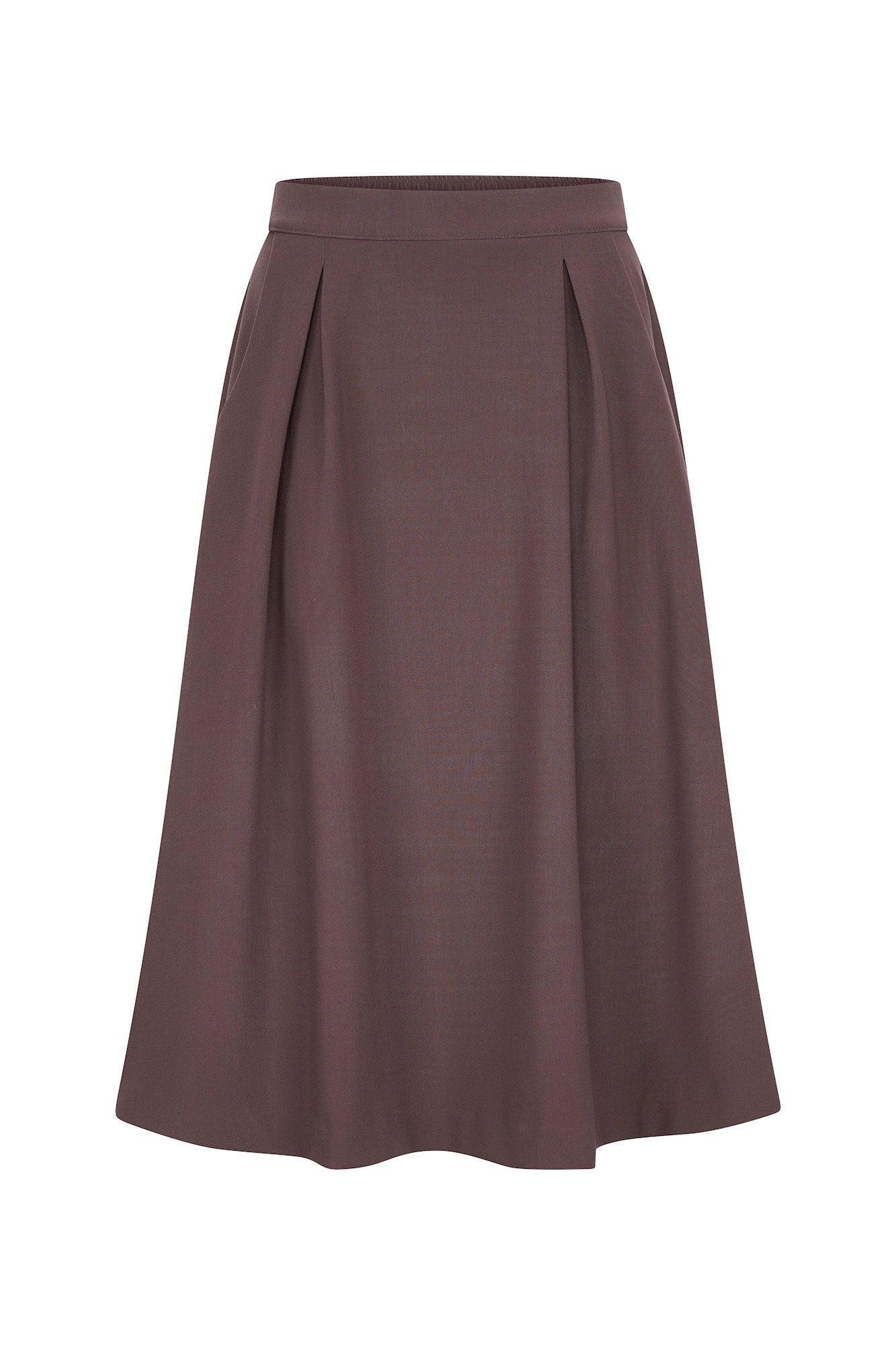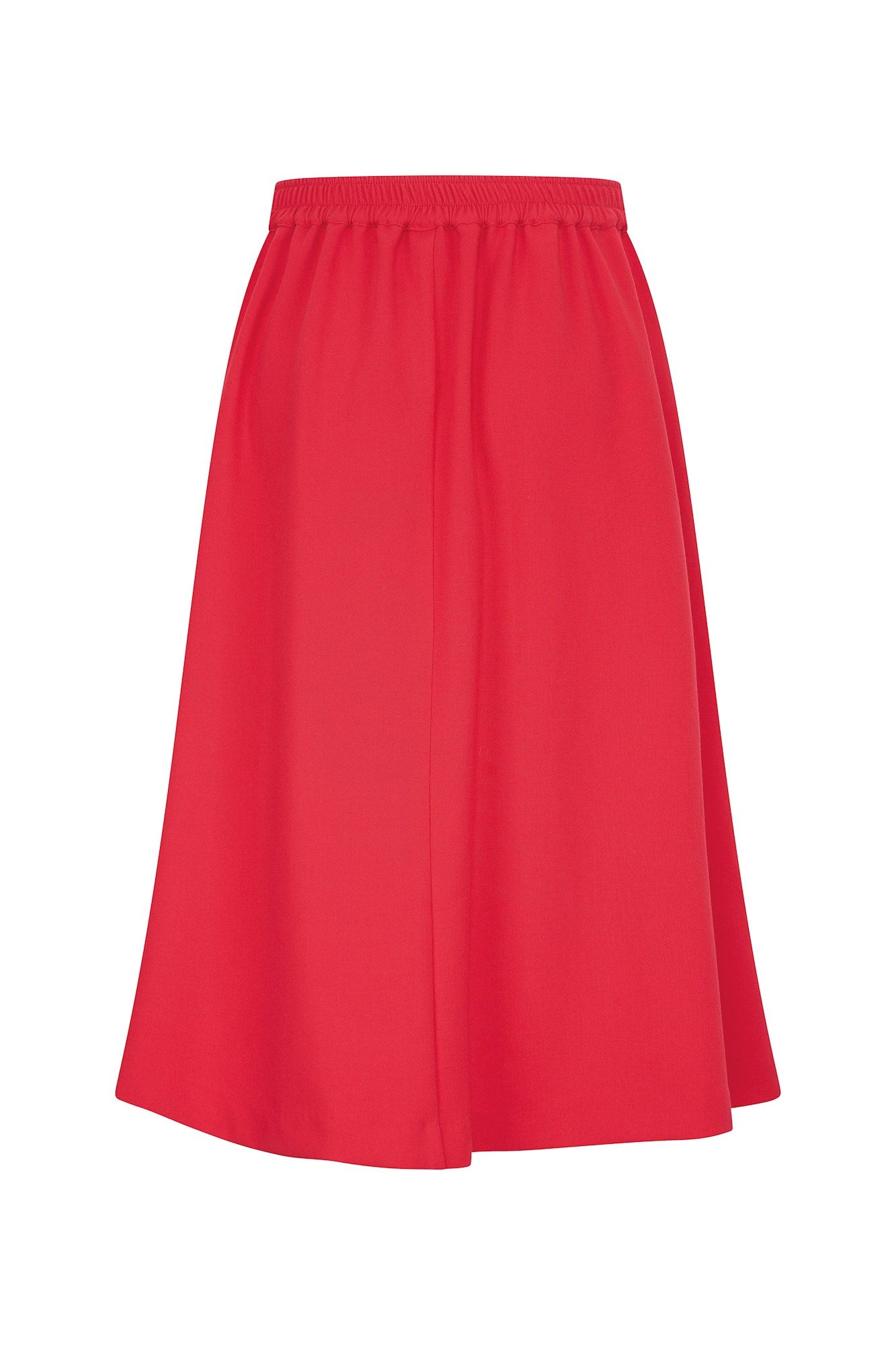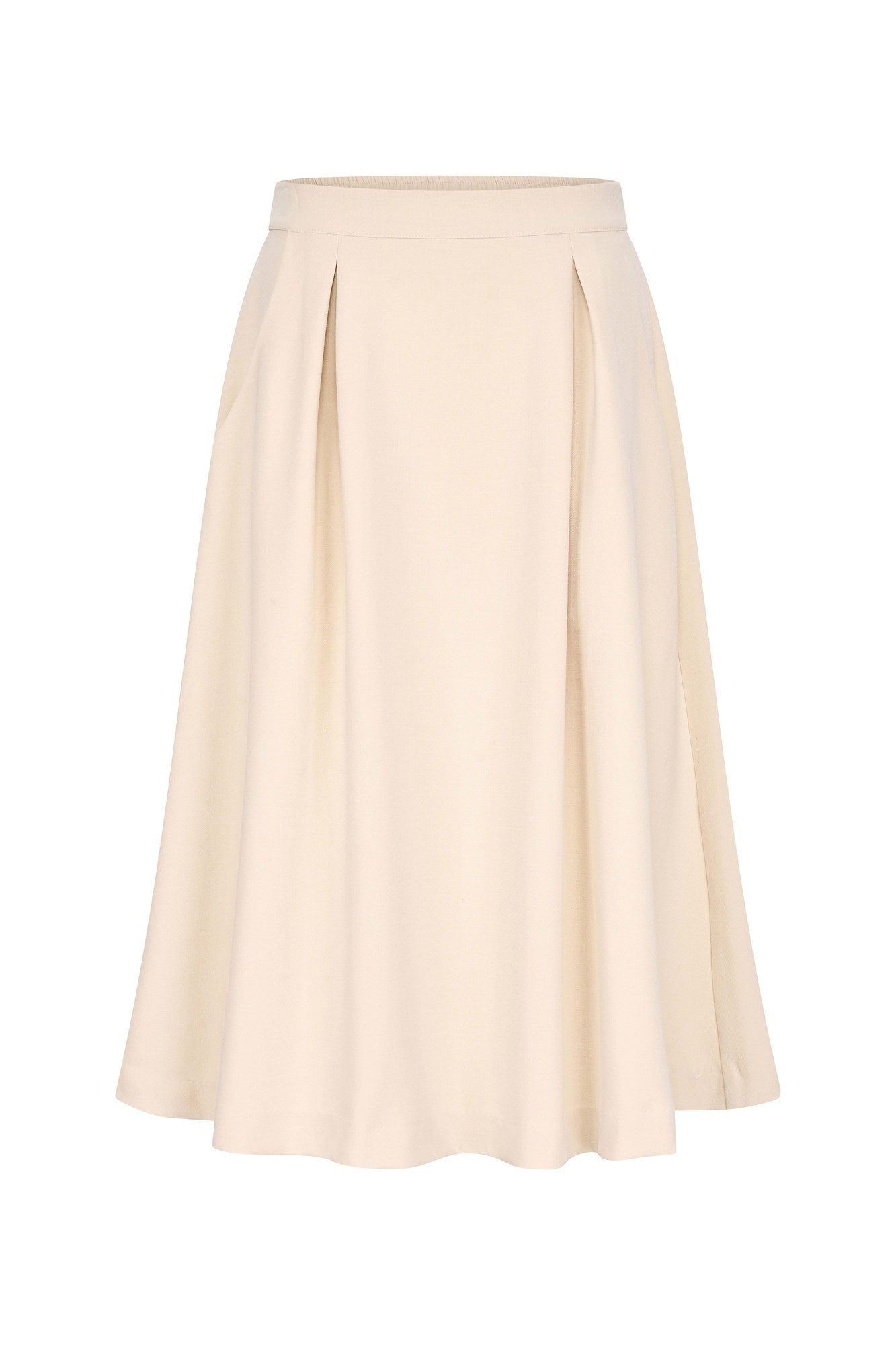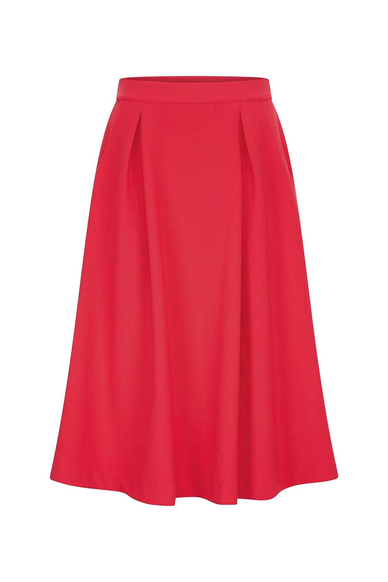 Wijde soepel vallende rok met plooien en zakken. De rok heeft een ritssluiting in de zijnaad. Combineer met een geprinte blouse voor een feestelijk en vrouwelijk silhouet.