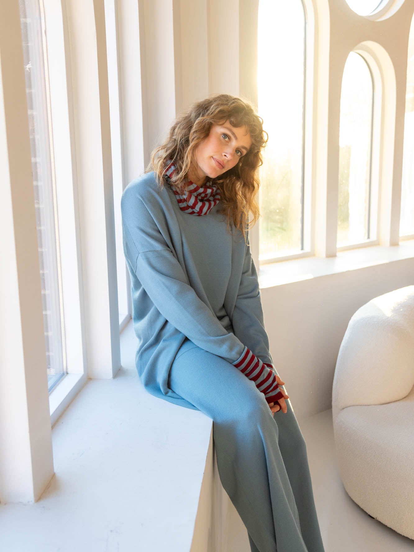 Los vallende trui van zachte viscose mix. De trui heeft verlaagde schoudernaden en een V-hals. Combineer met de bijpassende broek voor een comfortabele, warme en stijlvolle outfit.
