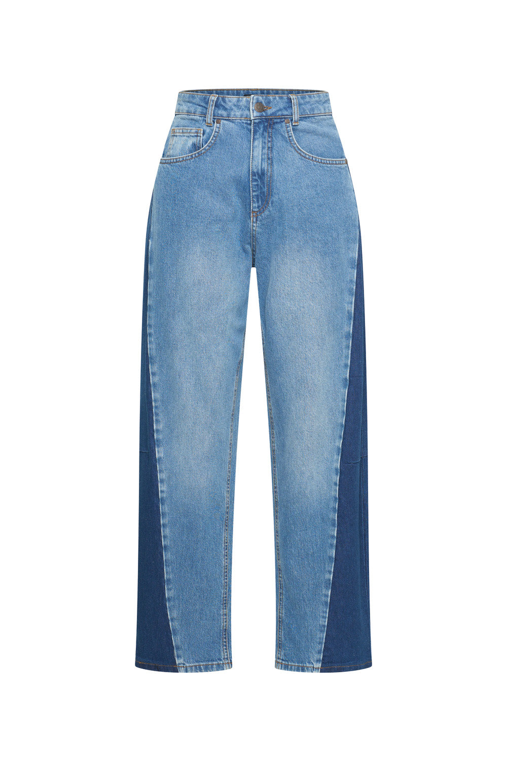 Een must-have dit voorjaar: deze trendy balloon leg spijkerbroek met twee kleuren denim. De broek heeft een medium hoge taille, 5 pockets en enkellange los vallende pijpen met een smallere onderkant.</p>